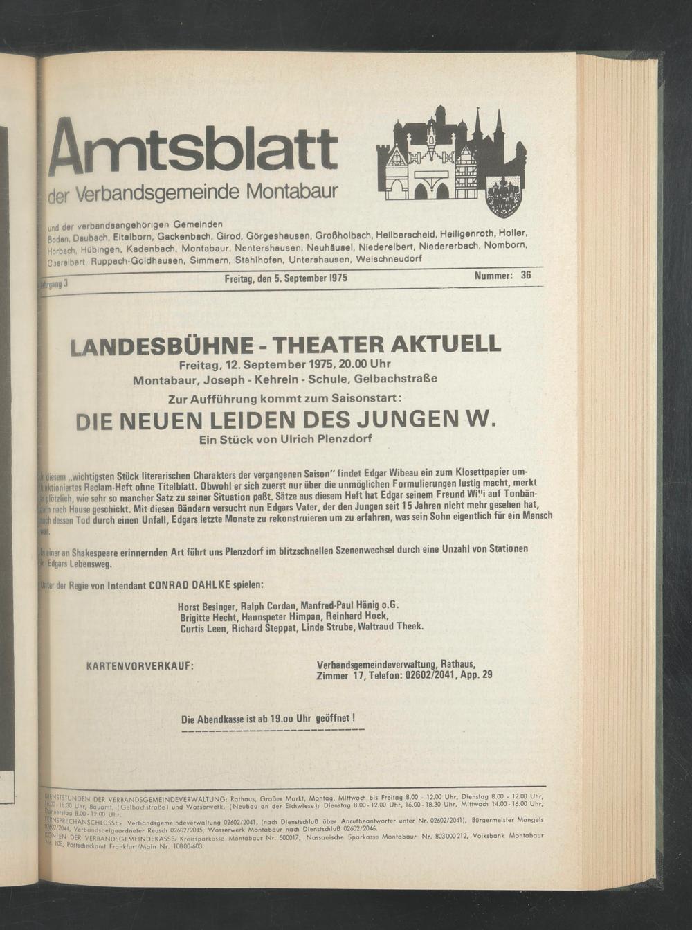 Freitag, 12. September 1975,20.00 Uhr Montabaur, Joseph - Kehrein - Schule, Gelbachstraße