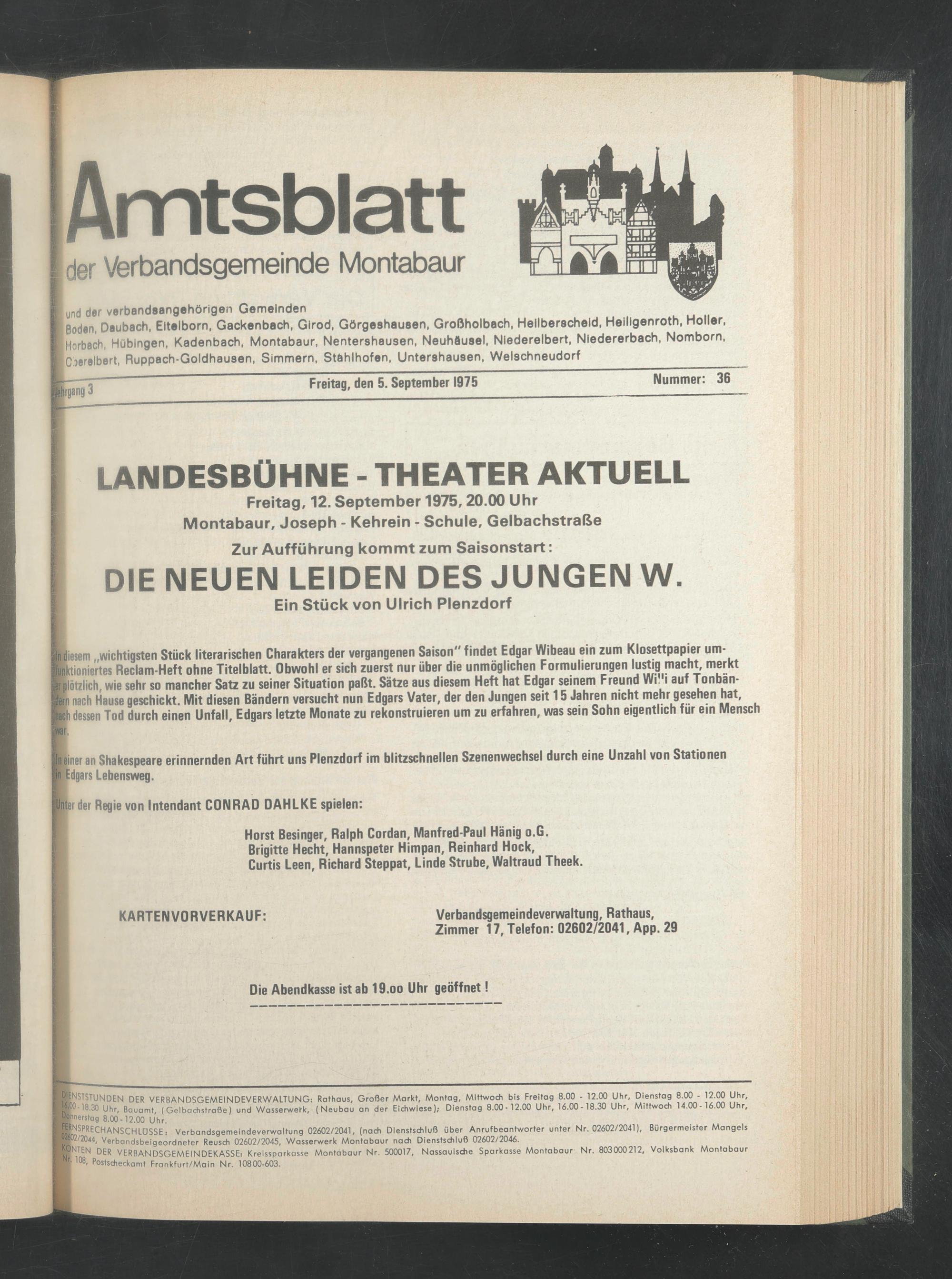 jL^i^^^ANSCHLUSSE i Verbandsgemeindeverwaltung 02602/2041, (nach Dienstschluß über Anrufbeantworter unter Nr. 02602/2041), Bürgermeister Mangels T Verbandsbeigeordneter Reusch 02602/2045, Wasserwerk Montabaur nach Dienstschluß 02602/2046.