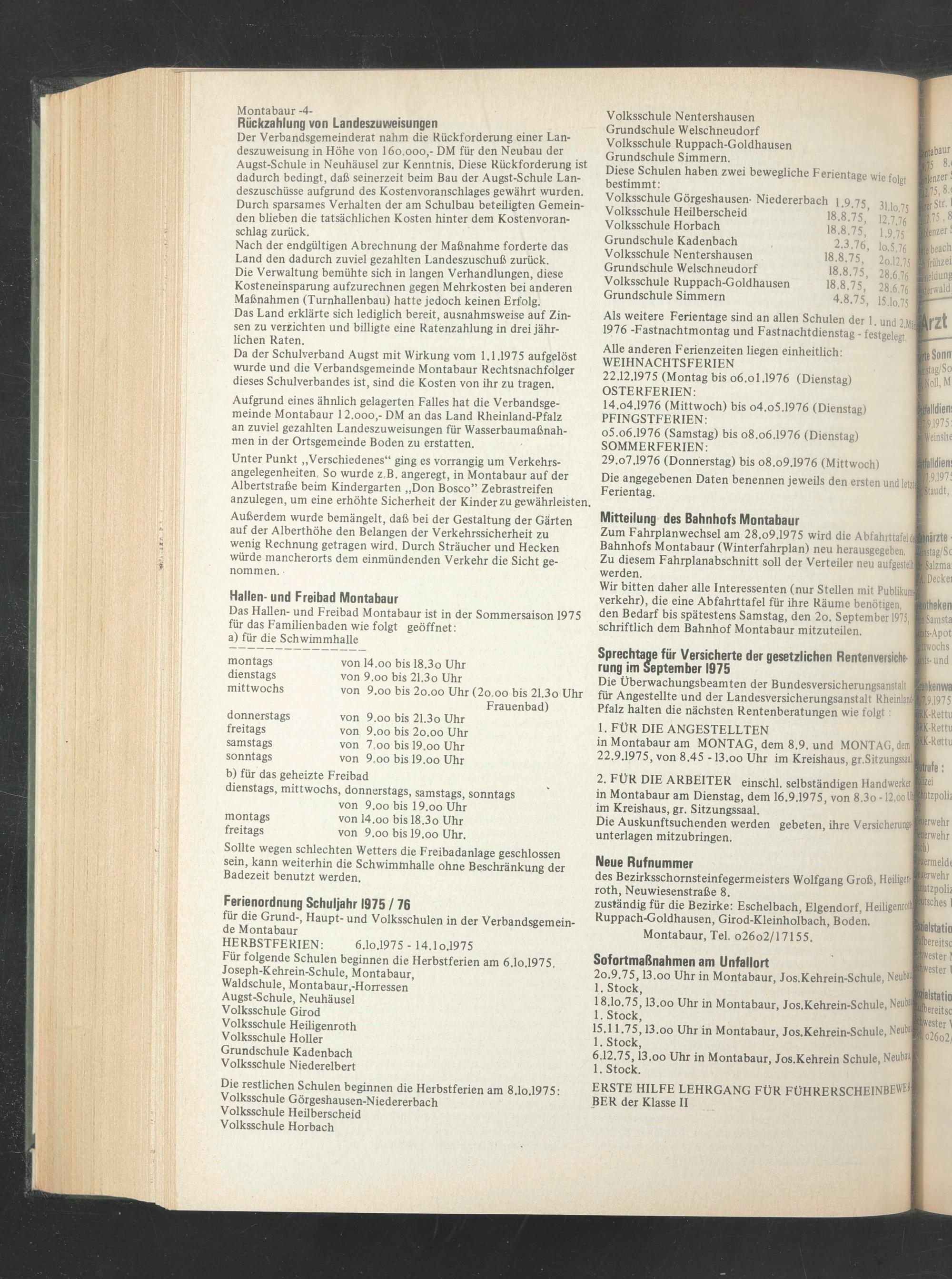 Das Hallen- und Freibad Montabaur ist in der Sommersaison 1975 für das Familienbaden wie folgt geöffnet: a) für die Schwimmhalle