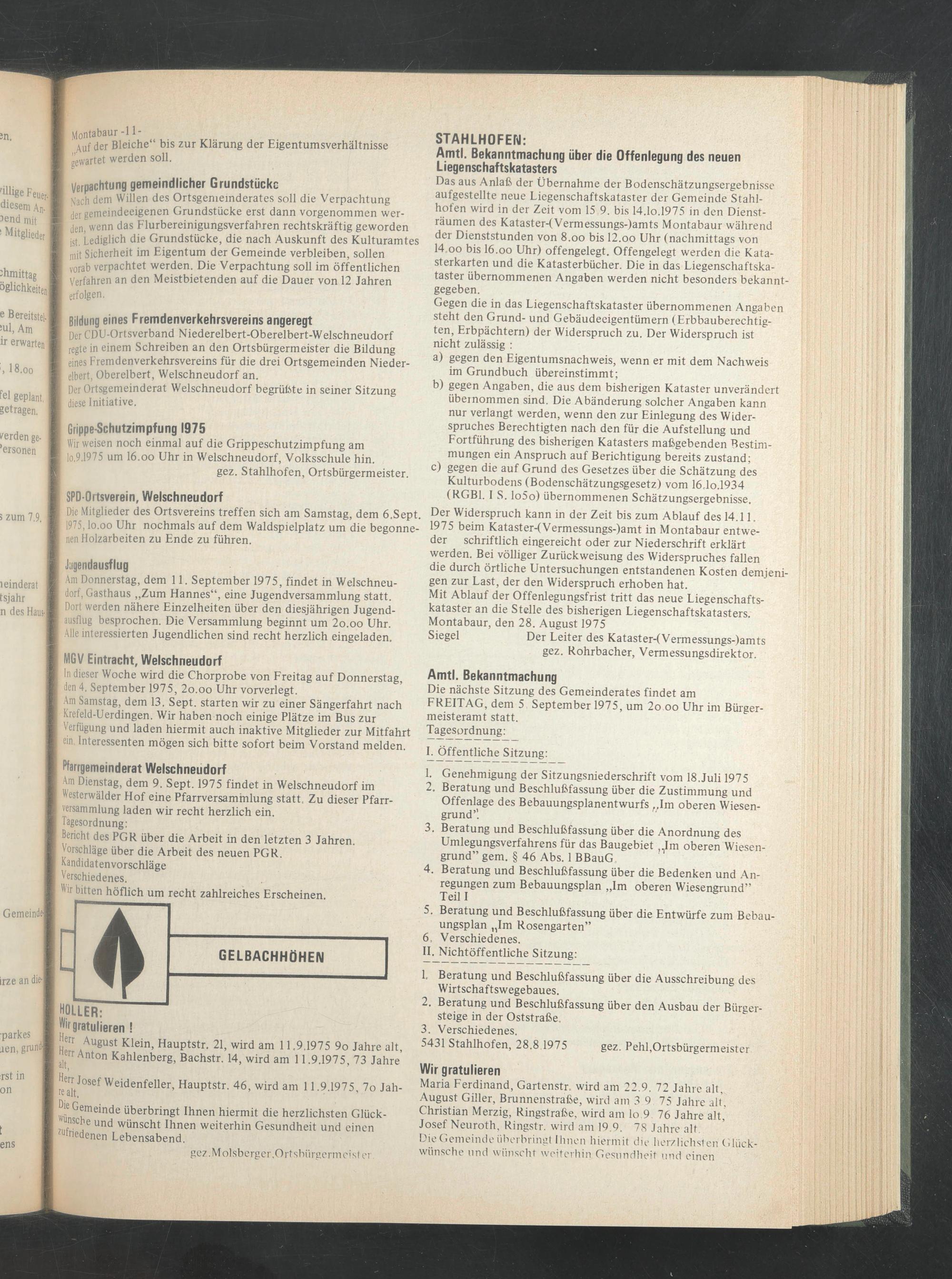 5431 Stahlhofen, 28.8 1975 gez. Pehl,Ortsbürgermeister