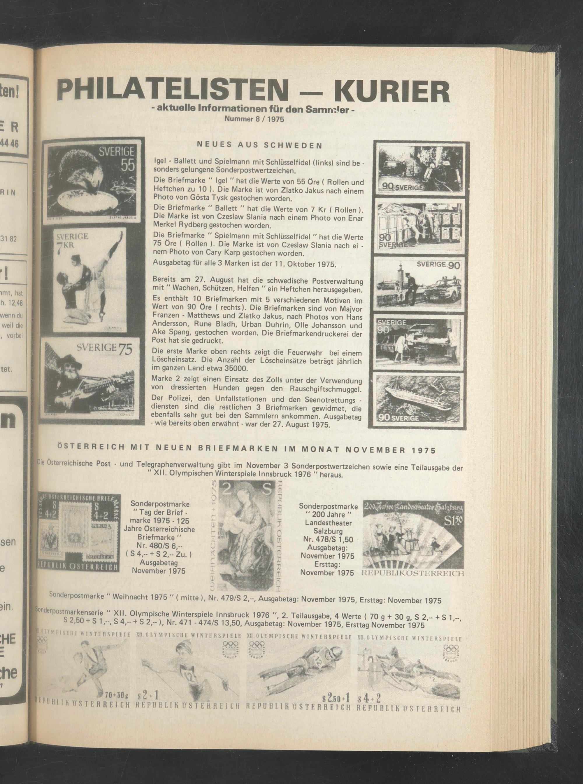 ÖSTERREICH MIT NEUEN BRIEFMARKEN IM MONAT NOVEMBER 1975