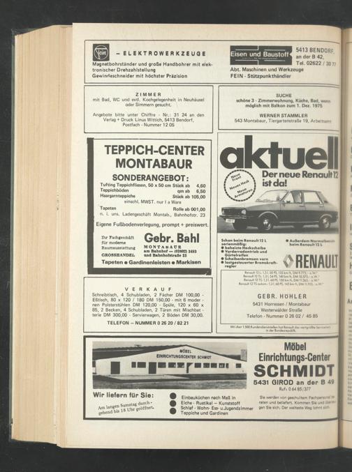 Angebote bitte unter Chiffre - Nr.: 31 24 an den Verlag + Druck Linus Wittich, 5413 Bendorf, Postfach - Nummer 12 05