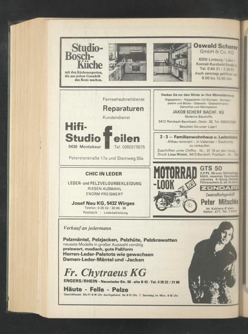 Zuschriften unter Chiffre - Nr.: 31 19 an den Verlag + Druck Linus Wittich, 5413 Bendorf, Postfach - Nr.: 1205