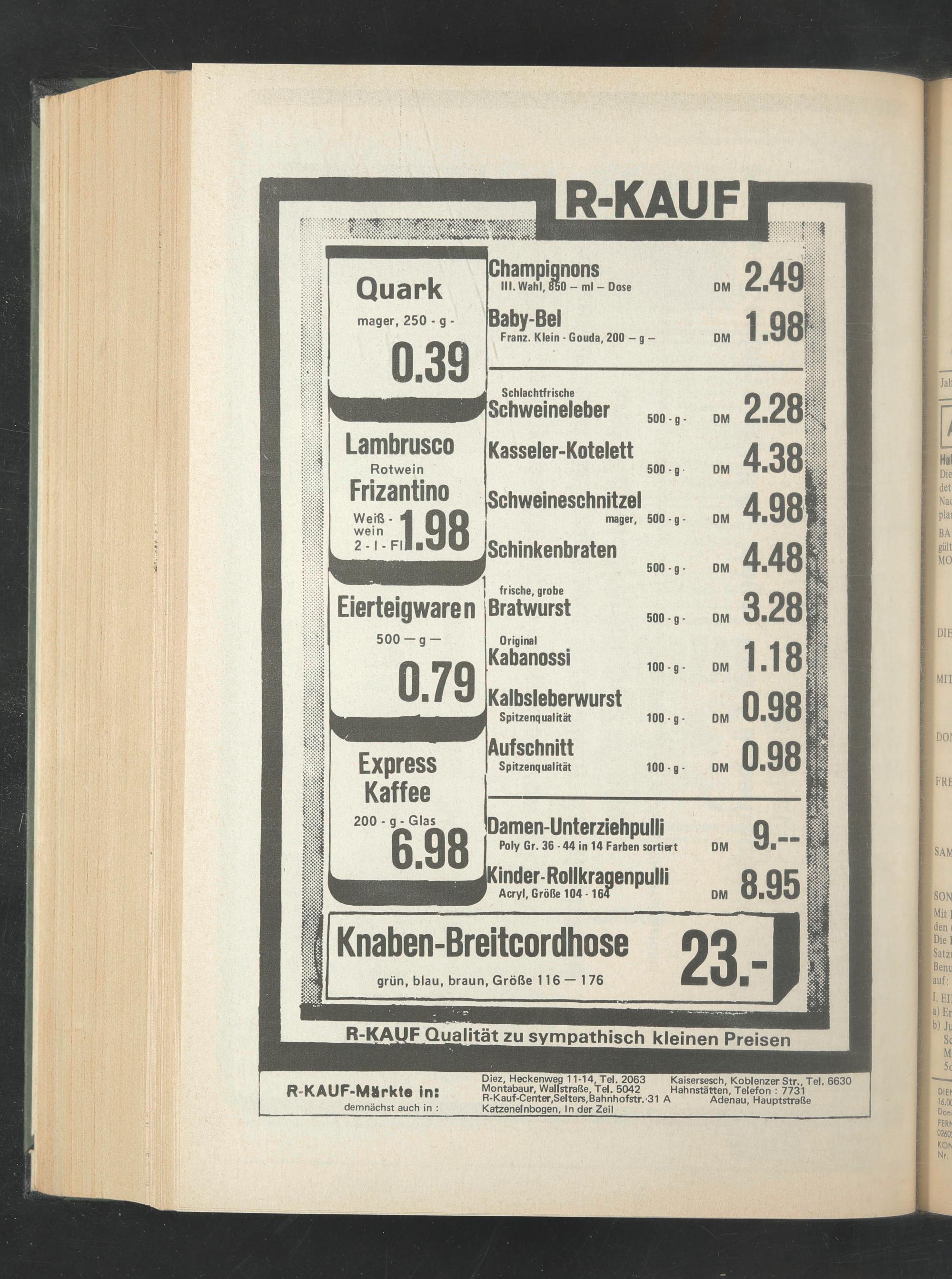 Diez, Heckenweg 11-14 Tel. 2063 Kaisersesch, Koblenzer Str., Tel. 6630 Montabaur, WaMstraße.Tel. 5042 Hahnstätten, Telefon : 7731 R-Kauf-Center.Selters,Bahnhofstr. 31 A Adenau, Hauptstraße
