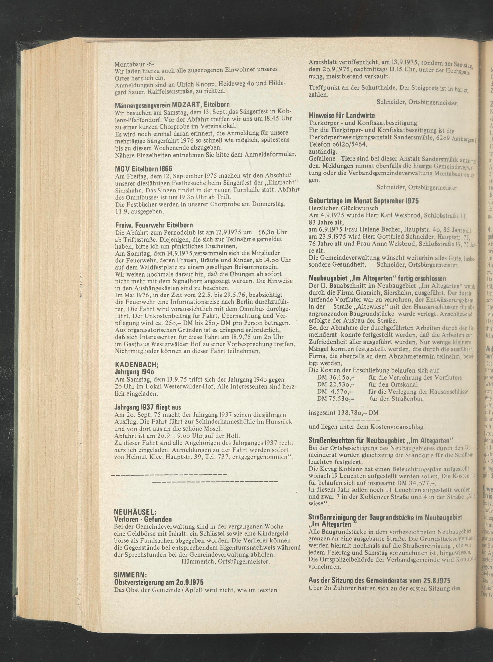Die Gemeindeverwaltung wünscht weiterhin alles Gute, insbesondere Gesundheit. Schneider, Ortsbürgermeister,