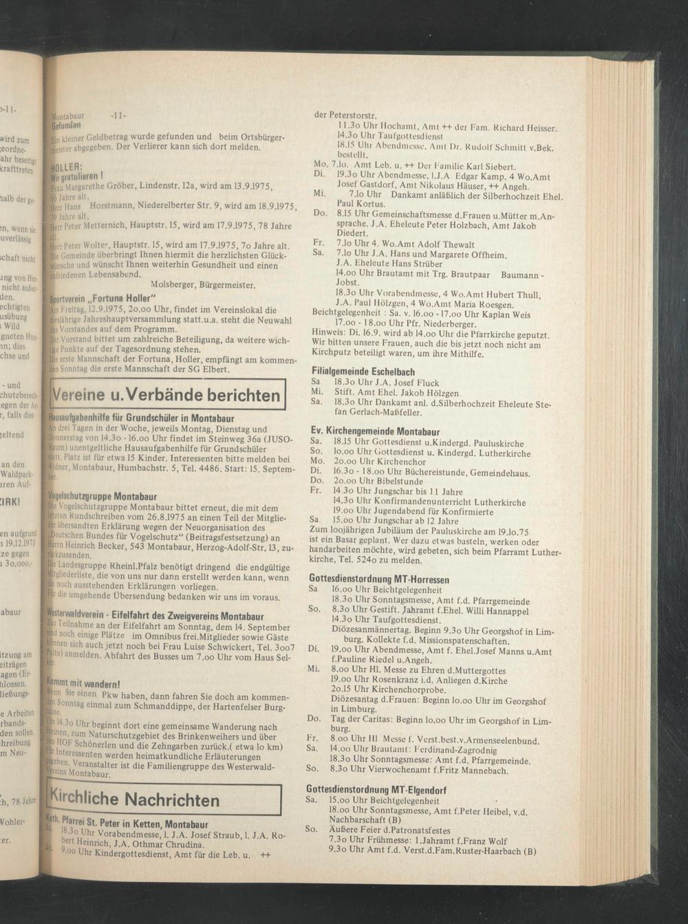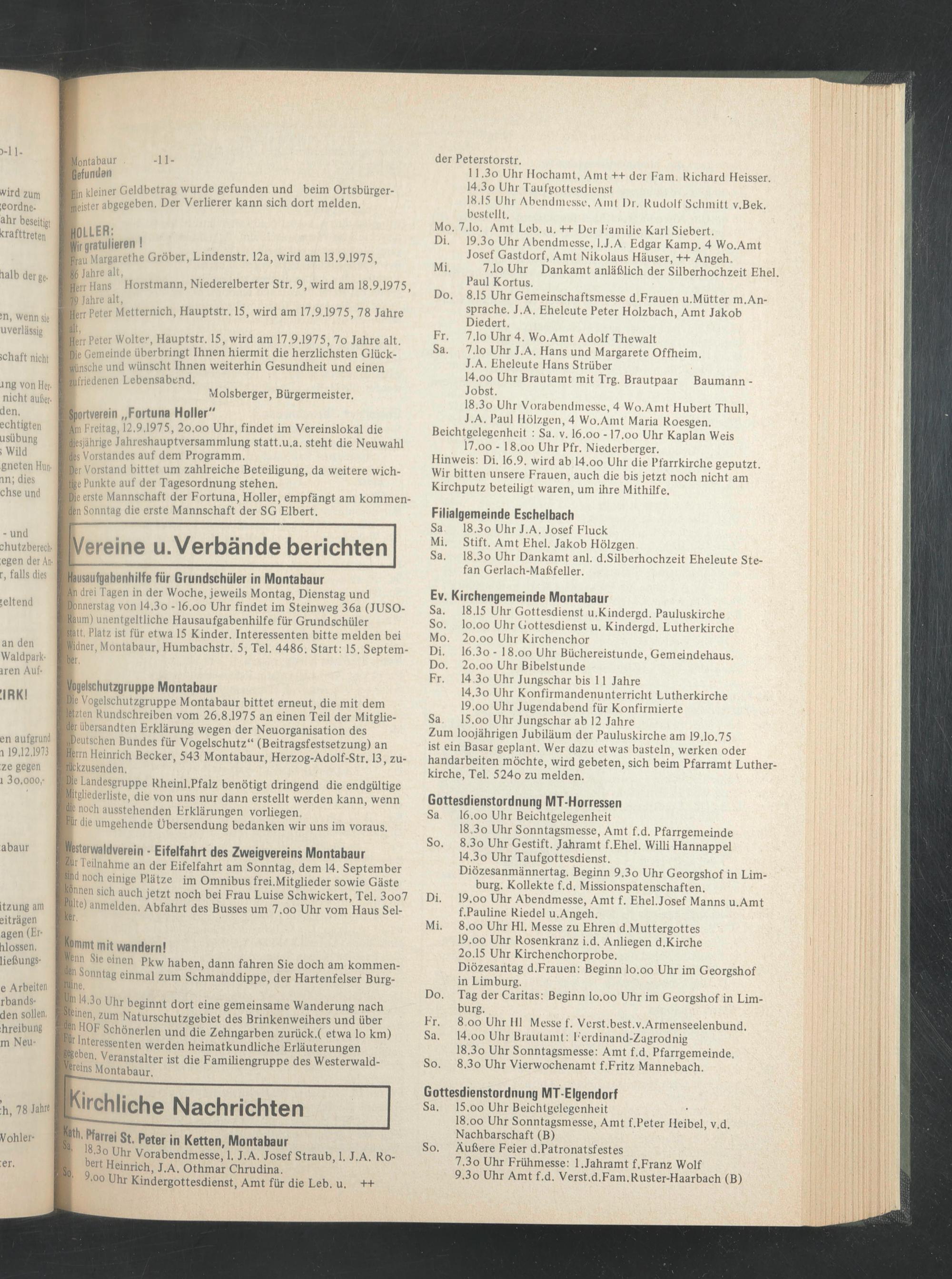 I Herr Peter Woltem, Hauptstr. 15, wird am 17.9.1975, 7o Jahre alt.