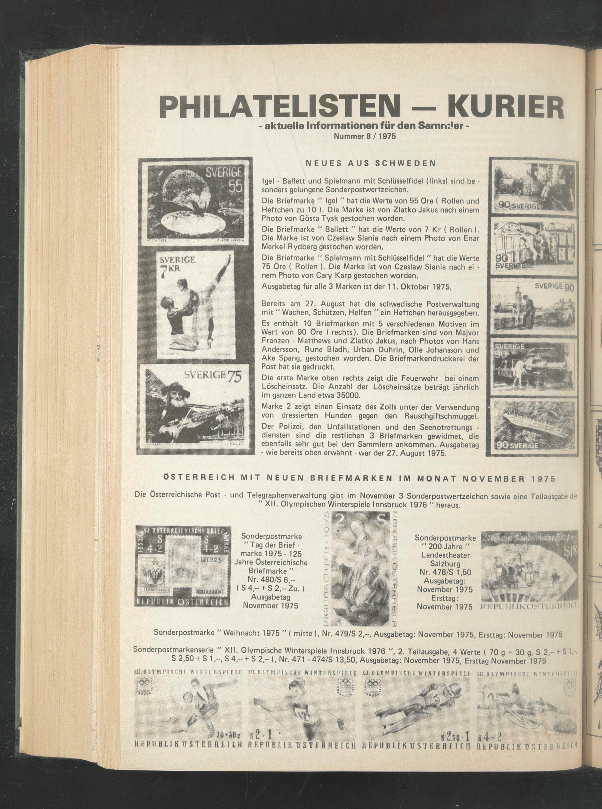 ÖSTERREICH MIT NEUEN BRIEFMARKEN IM MONAT NOVEMBER 1975