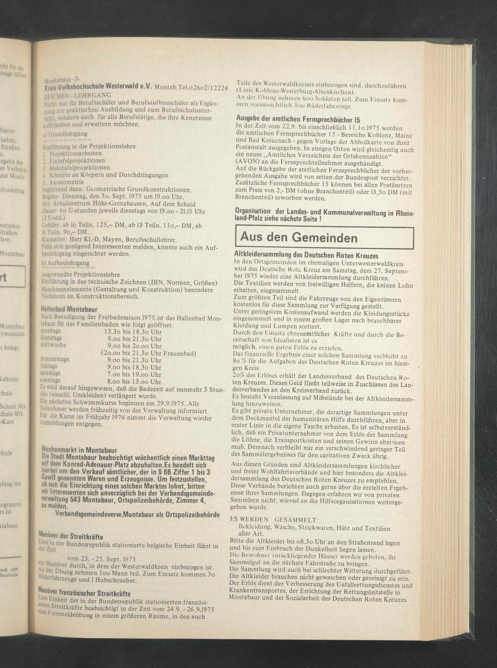 ln den Ortsgemeinden im ehemaligen Unterwesterwaldkreis wird das Deutsche Rote Kreuz am Samstag, dem 27. September 1975 wieder eine Altkleidersammlung durchführen.