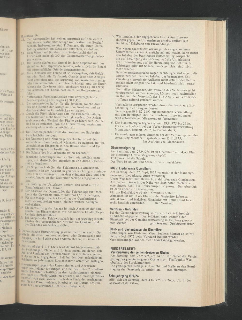 7. Einwendungen müssen eingehen bei der Verbandsgemeindeverwaltung Montabaur spätestens am 12.11.1975.