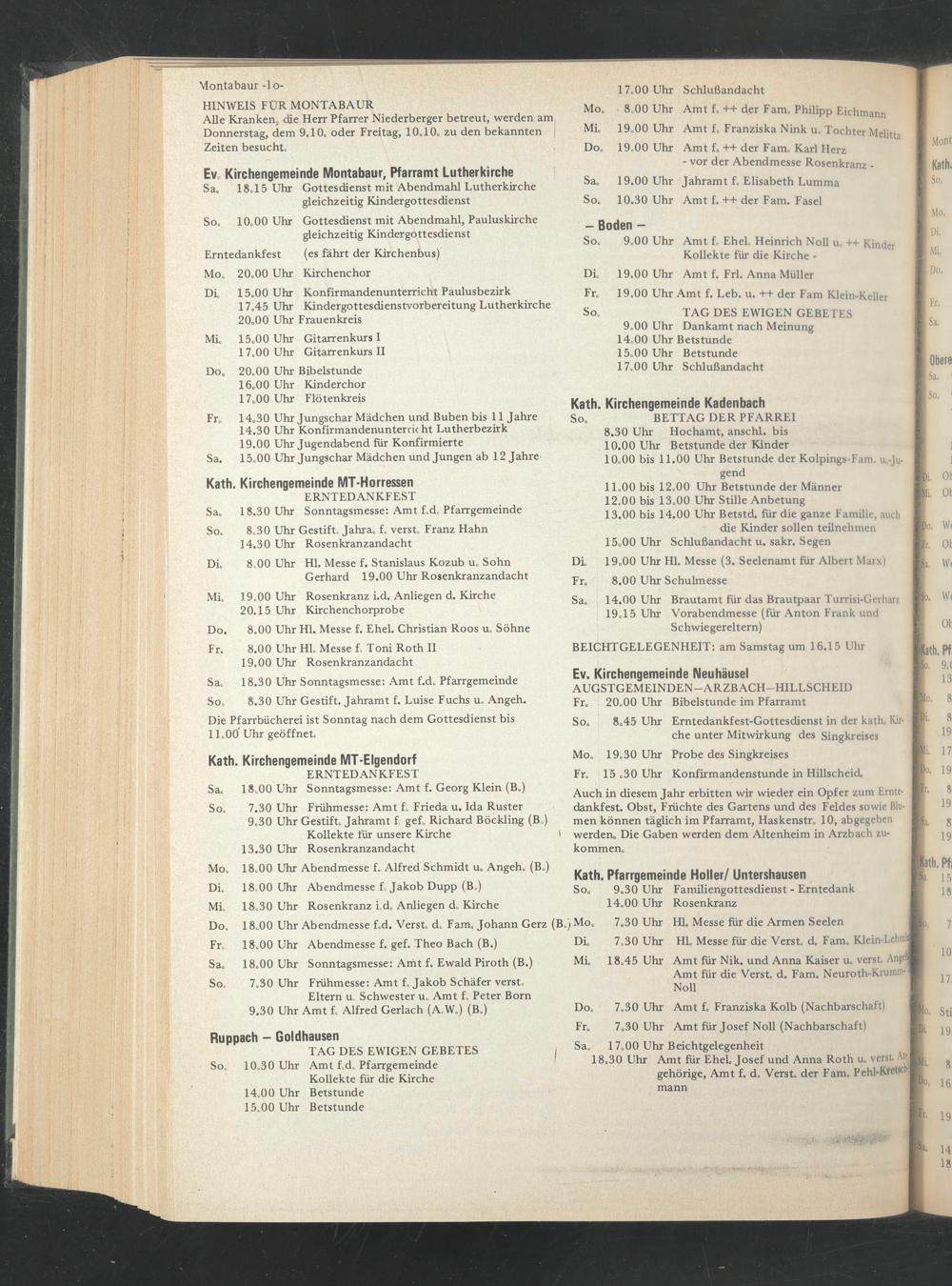 Sa. 14.00 Uhr Brautamt für das Brautpaar Turrisi-Gerharz 19.15 Uhr Vorabendmesse (für Anton Frank und Schwiegereltern)