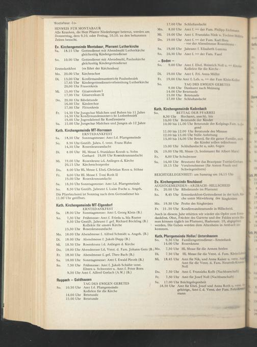 18.30 Uhr Amt für Ehel. Josef und Anna Roth u. verst. Angehörige, Amt f. d. Verst. der Fam. Pehl-Ktetscfc- mann