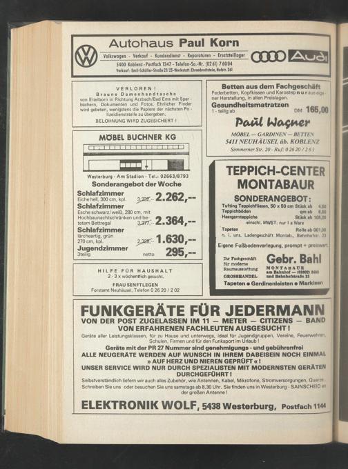 ELEKTRONIK WOLFf 5438 Westerburg, Postfach 1144