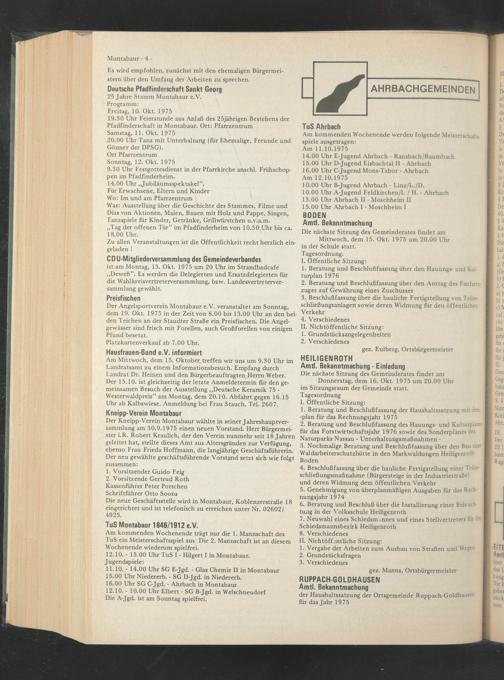 19.30 Uhr Feierstunde aus Anlaß des 25jährigen Bestehens der Pfadfinderschaft in Montabaur. Ort: Pfarrzentrum Samstag, 11. Okt. 1975