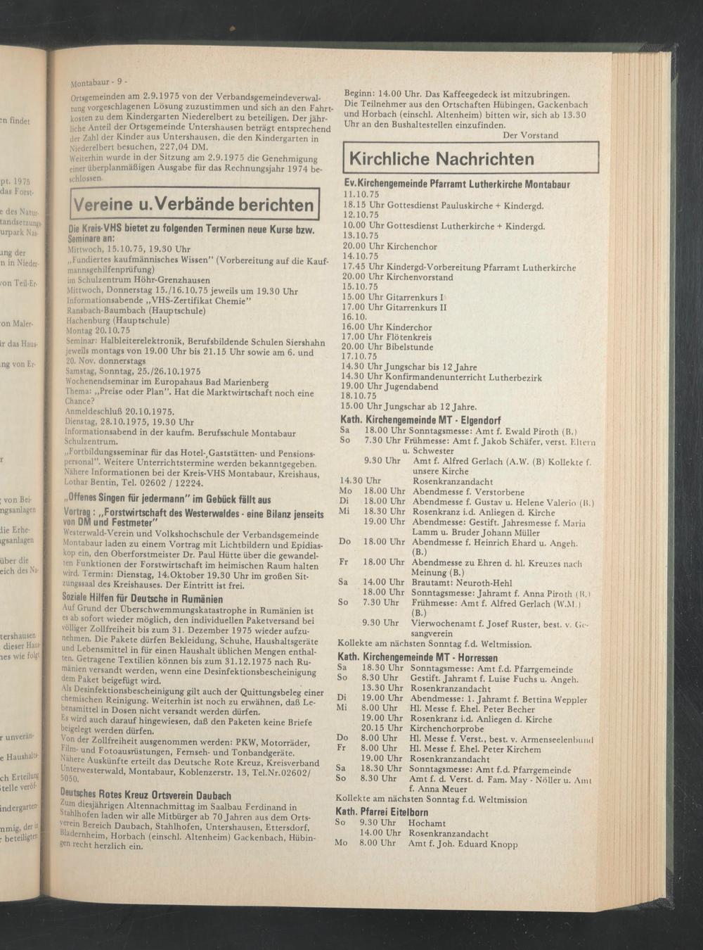 „Fortbildungsseminar für das Hotel- ( Gaststätten- und Pensionspersonal”. Weitere Unterrichtstermine werden bekanntgegeben, Nähere Informationen bei der Kreis-VHS Montabaur, Kreishaus, Lothar Bentin, Tel. 02602 / 12224.
