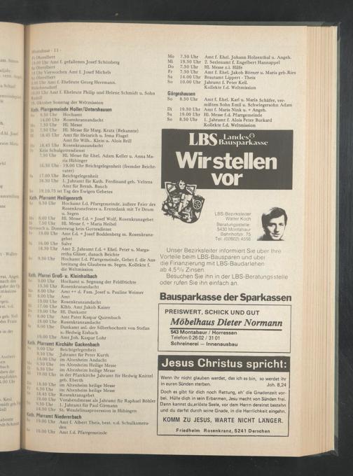 18.30 Uhr 1. Jahramt für Kath. Ferdinand geb. Veltens Amt für Bernh. Bauch