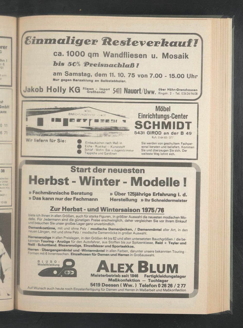 Meisterbetrieb seit 1846 Fertigkleidungslager Maßkonfektion — Tuchlager 5419 Deesen (Ww.) Telefon 026 26 / 277