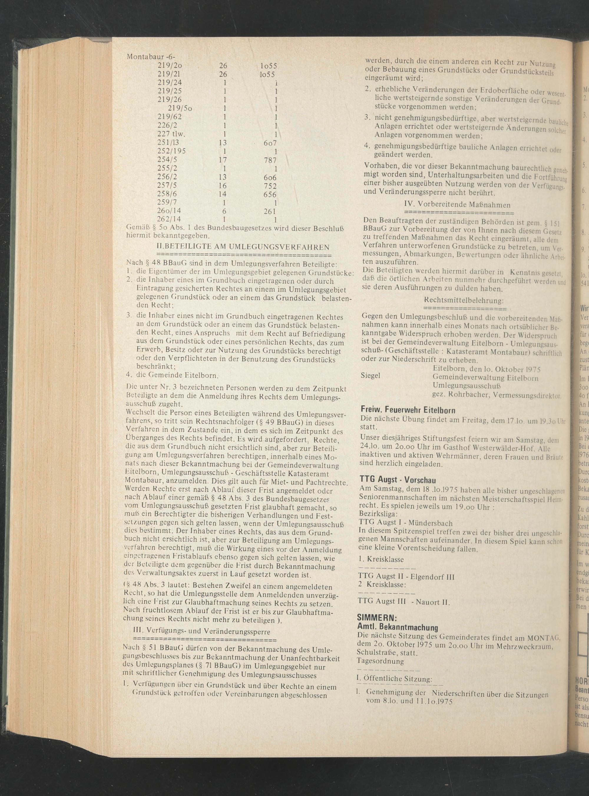 Eitelborn, den lo. Oktober 1975 Siegel Gemeindeverwaltung Eitelborn
