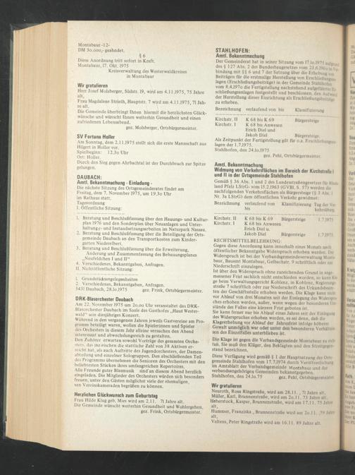 5431 Daubach, 28.lo.1975 gez. Frink, Ortsbürgermeister.