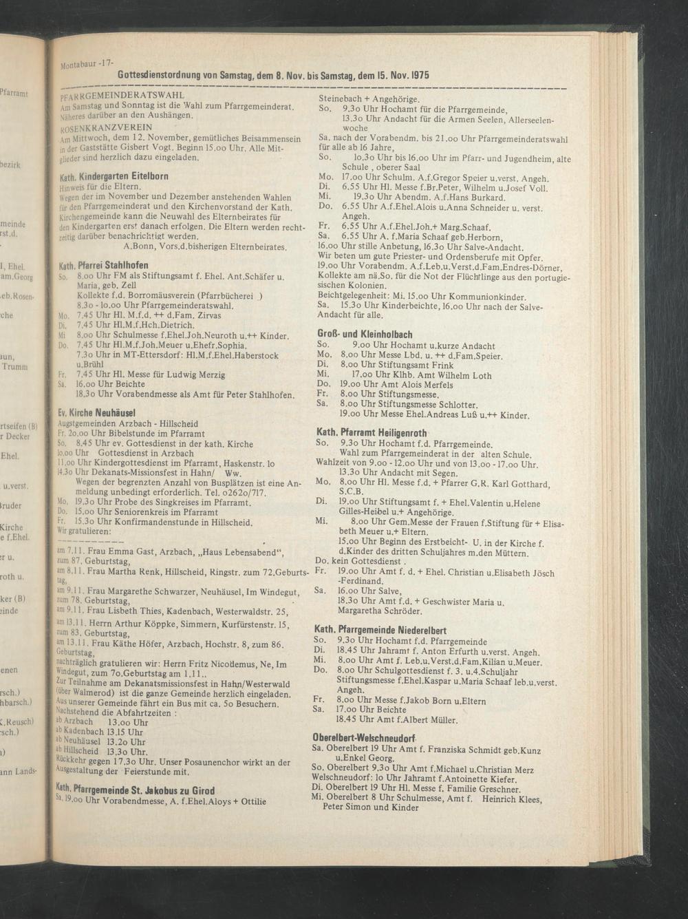 So. Oberelbert 9.3o Uhr Amt f.Michael u.Christian Merz Welschneudorf: lo Uhr Jahramt f.Antoinette Kiefer.