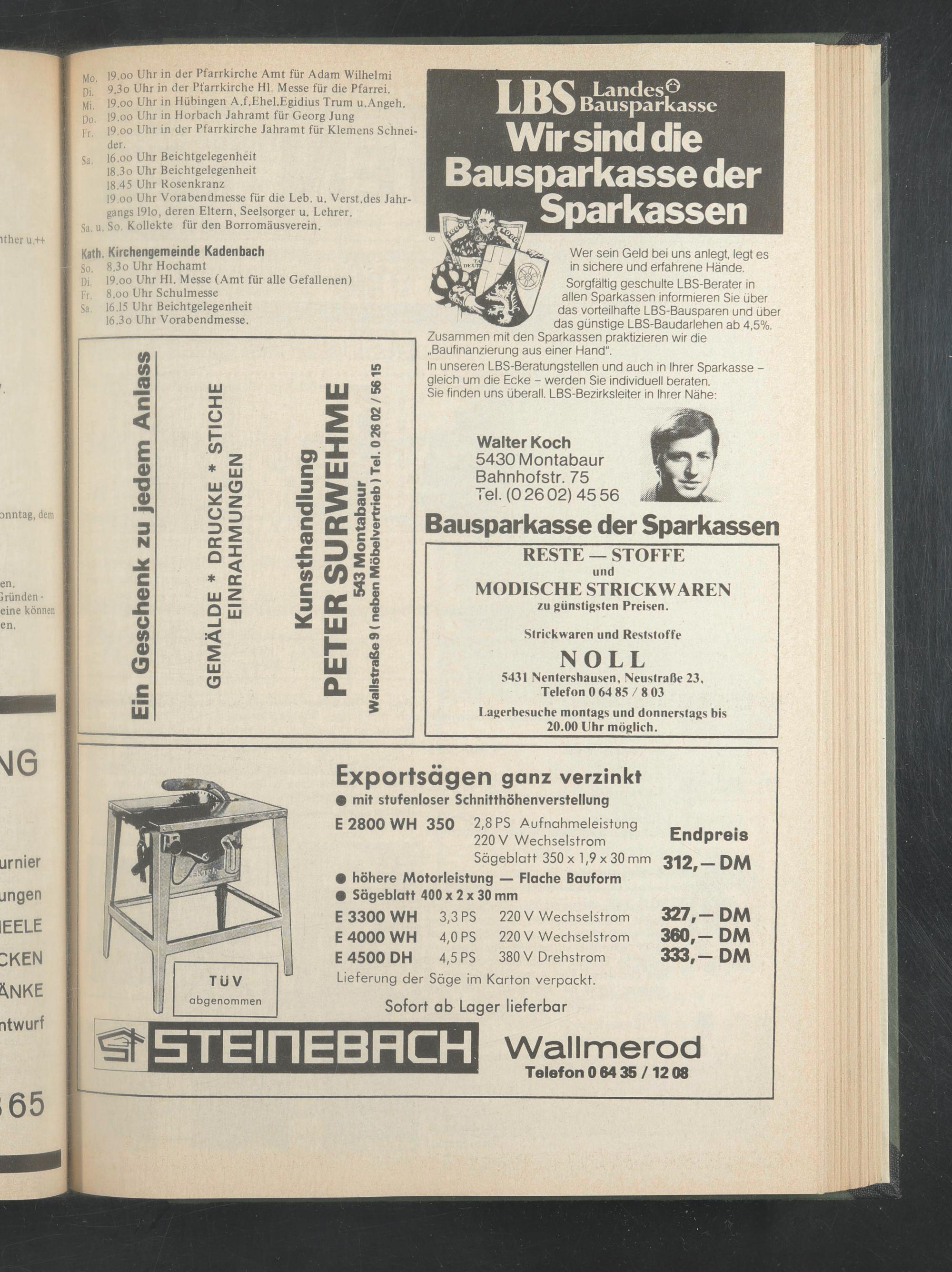 Mi, 19.oo Uhr in Hübingen A.f.Ehel.Egidius Trum u.Angeh. Do. 19.oo Uhr in Horbach Jahramt für Georg Jung F r , 19.oo Uhr in der Pfarrkirche Jahramt für Klemens Schneider.