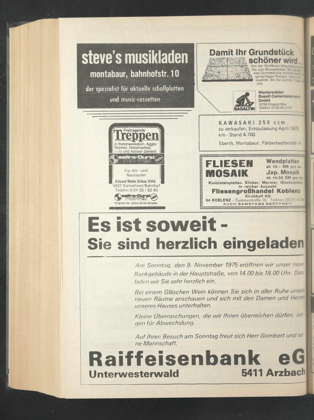 Am Sonntag, den 9. November 1975 eröffnen wir unser neues Rankgebäude in der Hauptstraße, von 14.00 bis 18.00 Uhr. Dazu laden wir Sie sehr herzlich ein.