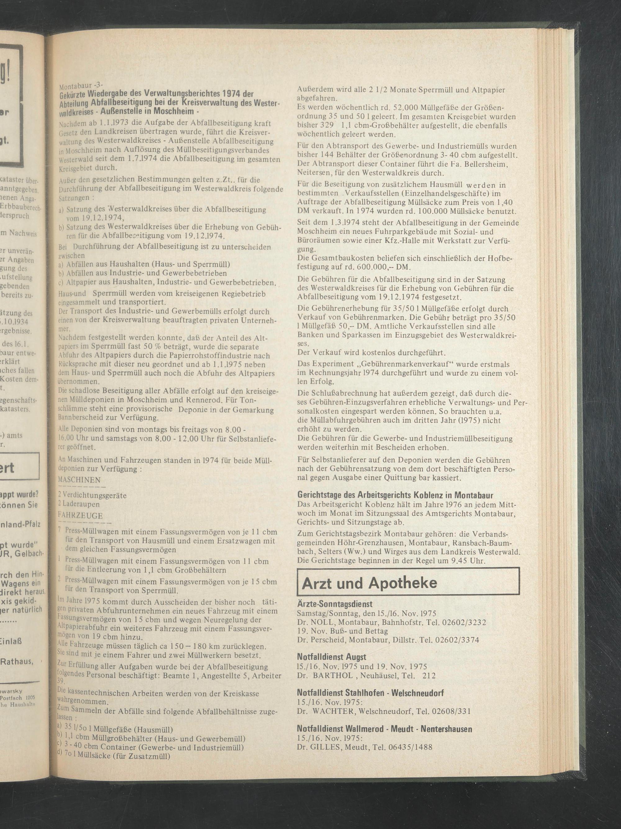 Gekürzte Wiedergabe des Verwaltungsberichtes 1974 der Abteilung Abfallbeseitigung bei der Kreisverwaltung des Wester- waldkreises - Außenstelle in Moschheim -