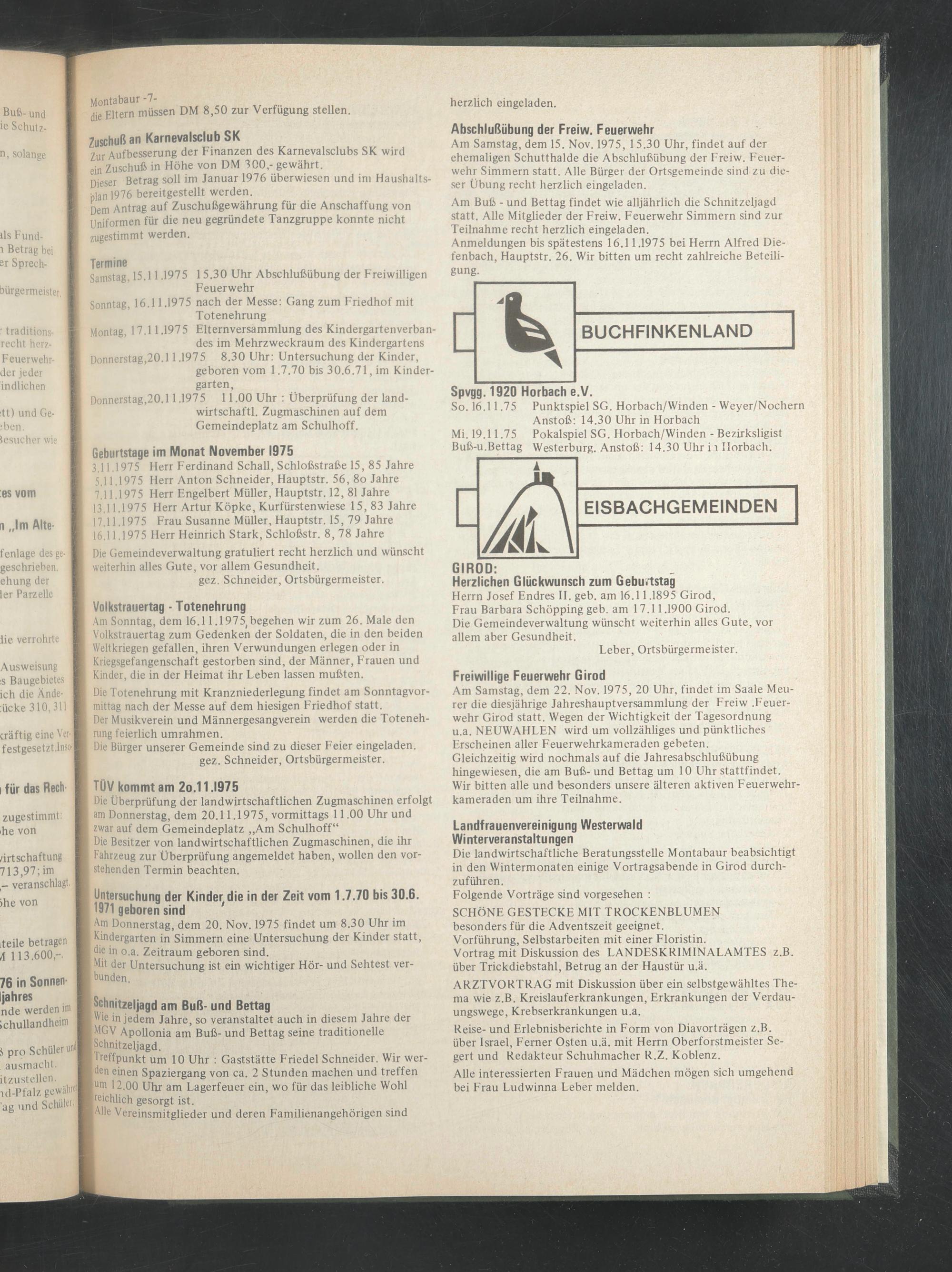 Anmeldungen bis spätestens 16.11.1975 bei Herrn Alfred Diefenbach, Hauptstr. 26. Wir bitten um recht zahlreiche Beteiligung.