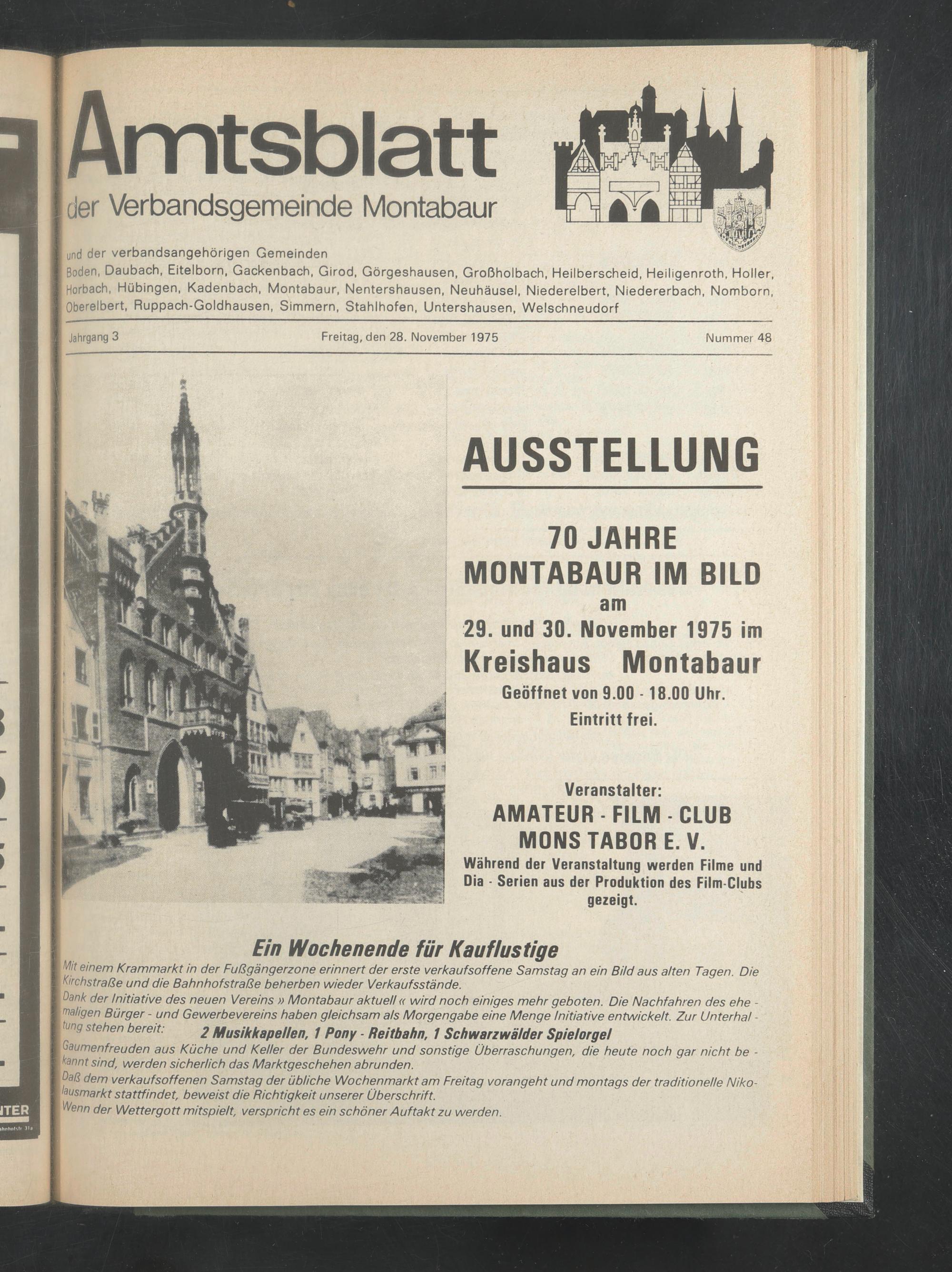 Gaß dem verkaufsoffenen Samstag der übliche Wochenmarkt am Freitag vorangeht und montags der traditionelle Niko- lausmarkt stattfindet, beweist die Richtigkeit unserer Überschrift.