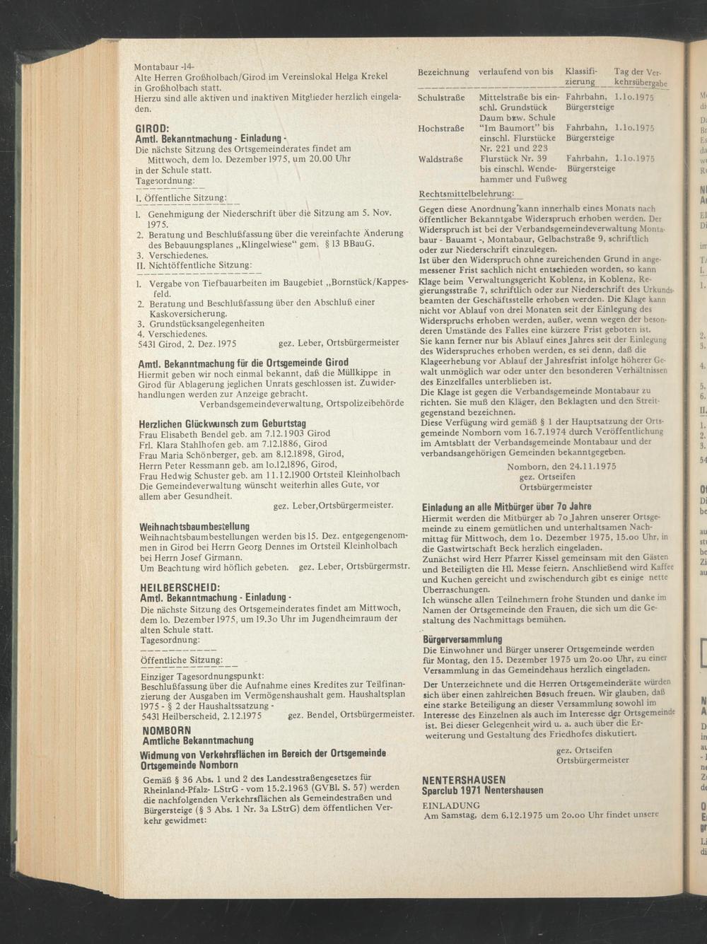 Nomborn, den 24.11.1975 gez. Ortseifen Ortsbürgermeister