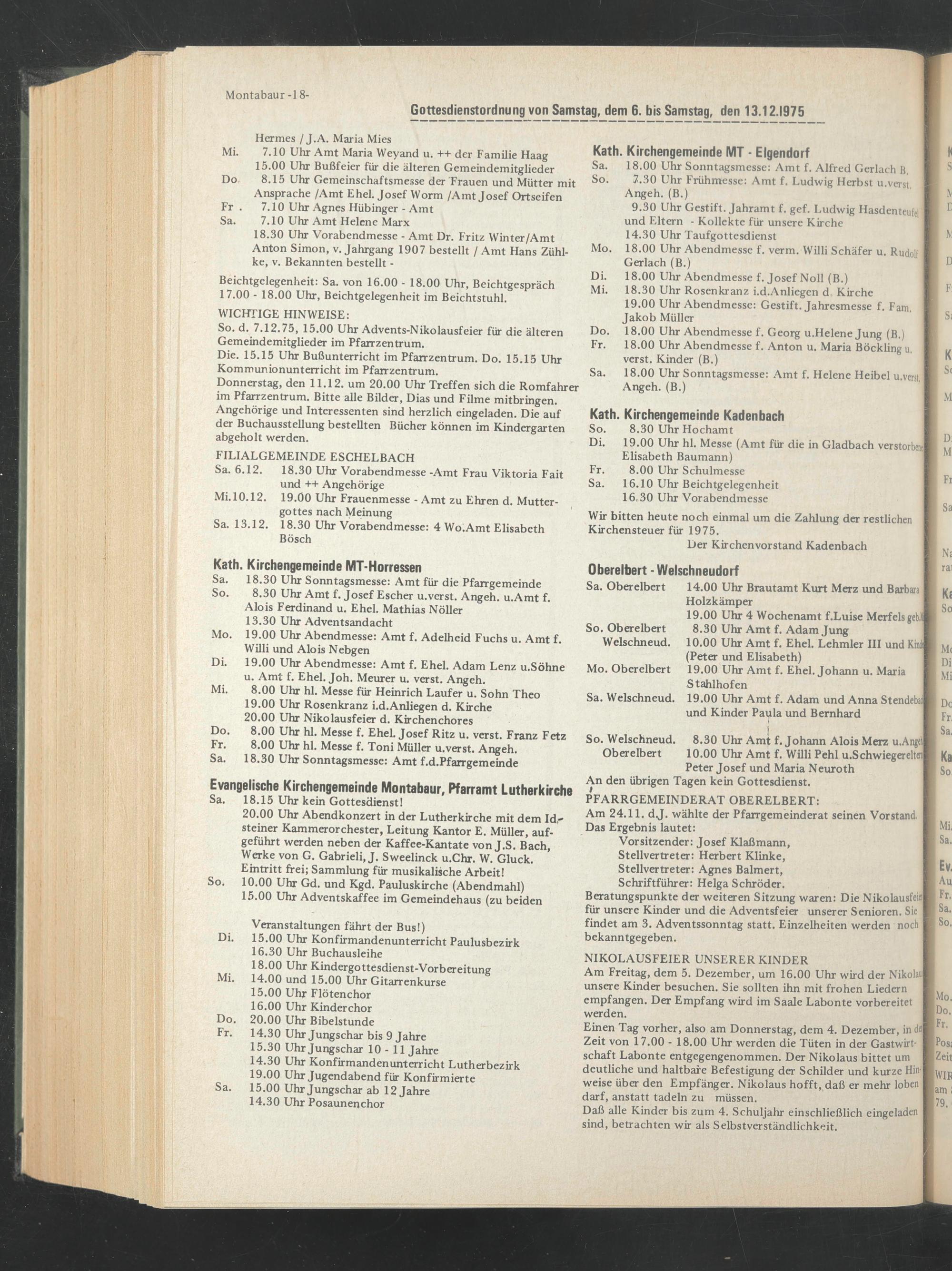 Gottesdienstordnung von Samstag, dem 6. bis Samstag, den 13.12.1975