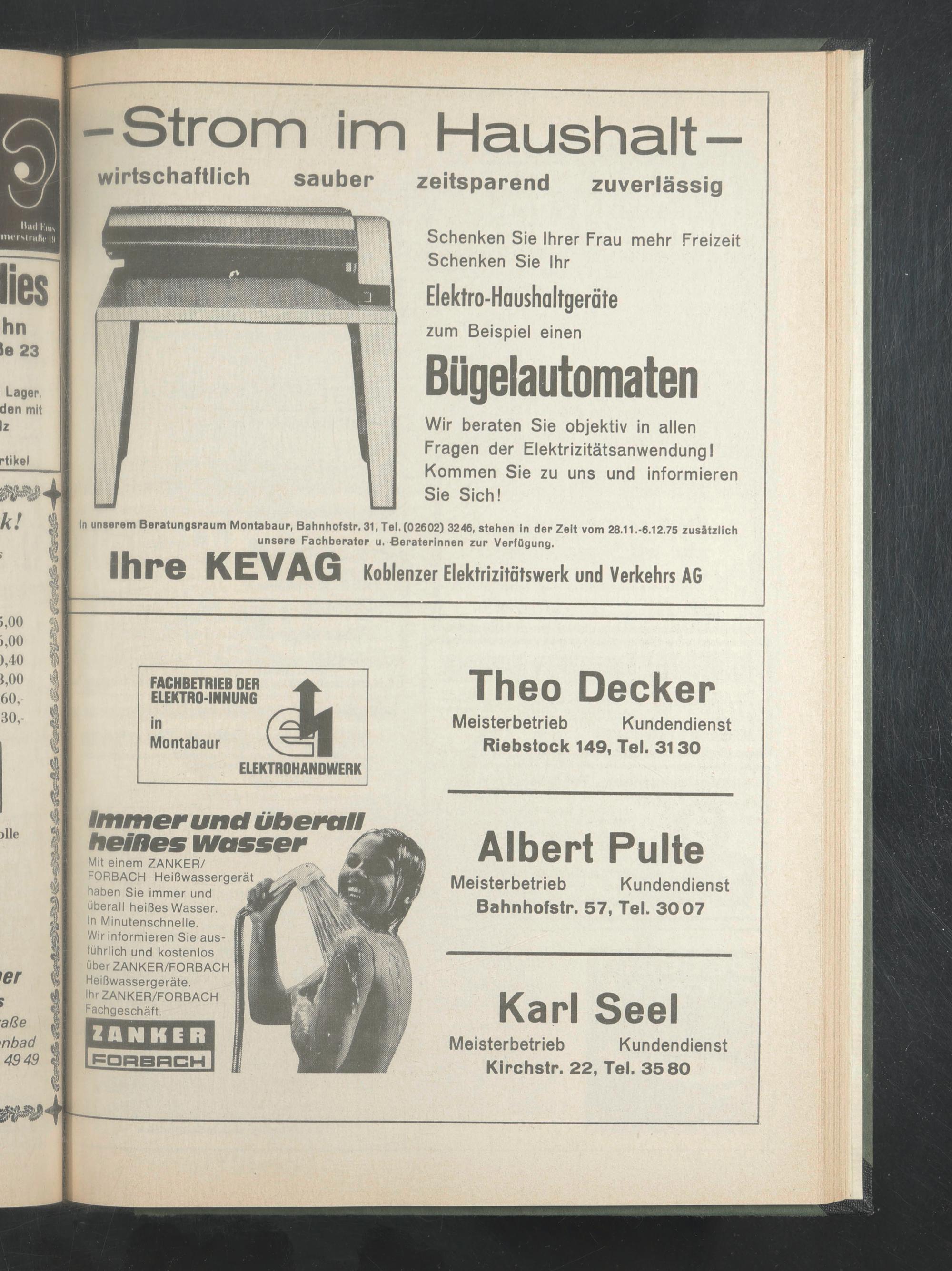 ln unserem Beratungsraum Montabaur, Bahnhofstr. 31, Tel. (02602) 3246, stehen in der Zelt vom 28.11.-6.12.75 zusätzlich