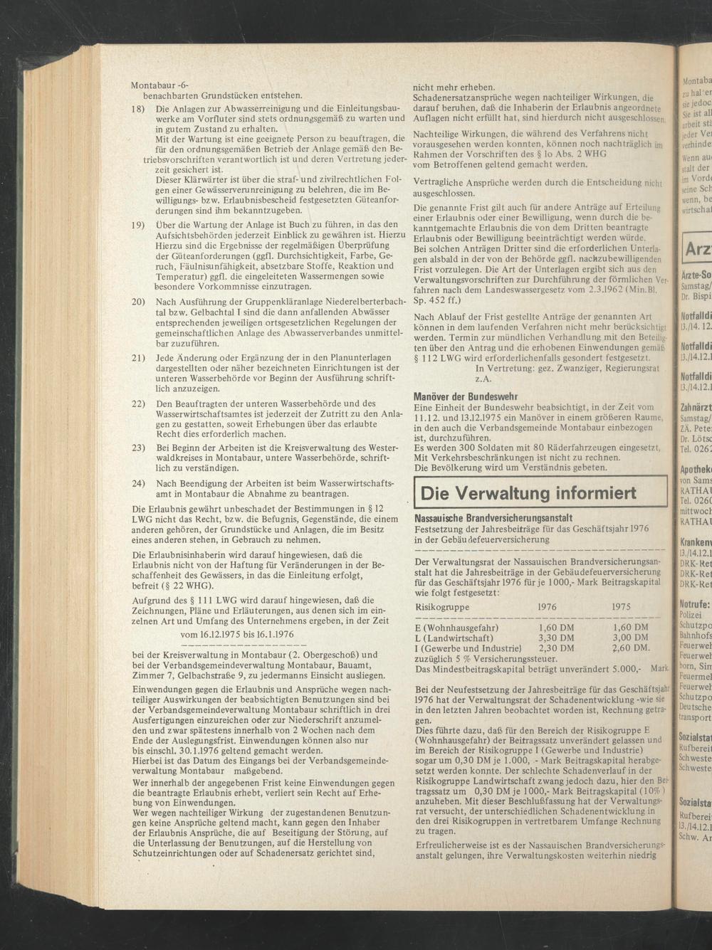 Eine Einheit der Bundeswehr beabsichtigt, in der Zeit vom 11.12. und 13.12.1975 ein Manöver in einem größeren Raume, in den auch die Verbandsgemeinde Montabaur einbezogen ist, durchzuführen.