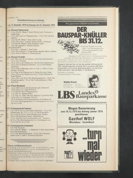 Gottesdienstordnung von Samstag, dem 13. Dezember 1975 bis Samstag, den 2o. Dezember 1975