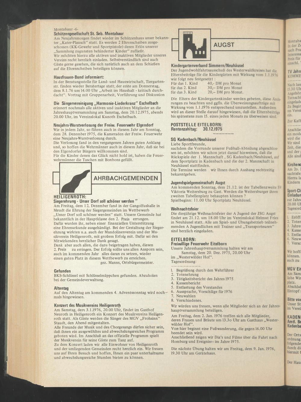 Am Samstag, dem 3.1.1976, 20.00 Uh'r, findet im Gasthof Neuroth in Heiligenroth ein Konzert des Musikvereins Heiligenroth statt. Als Gäste werden die Sänger des MGV „Frohsinn“ Staudt, den Abend mitgestalten.