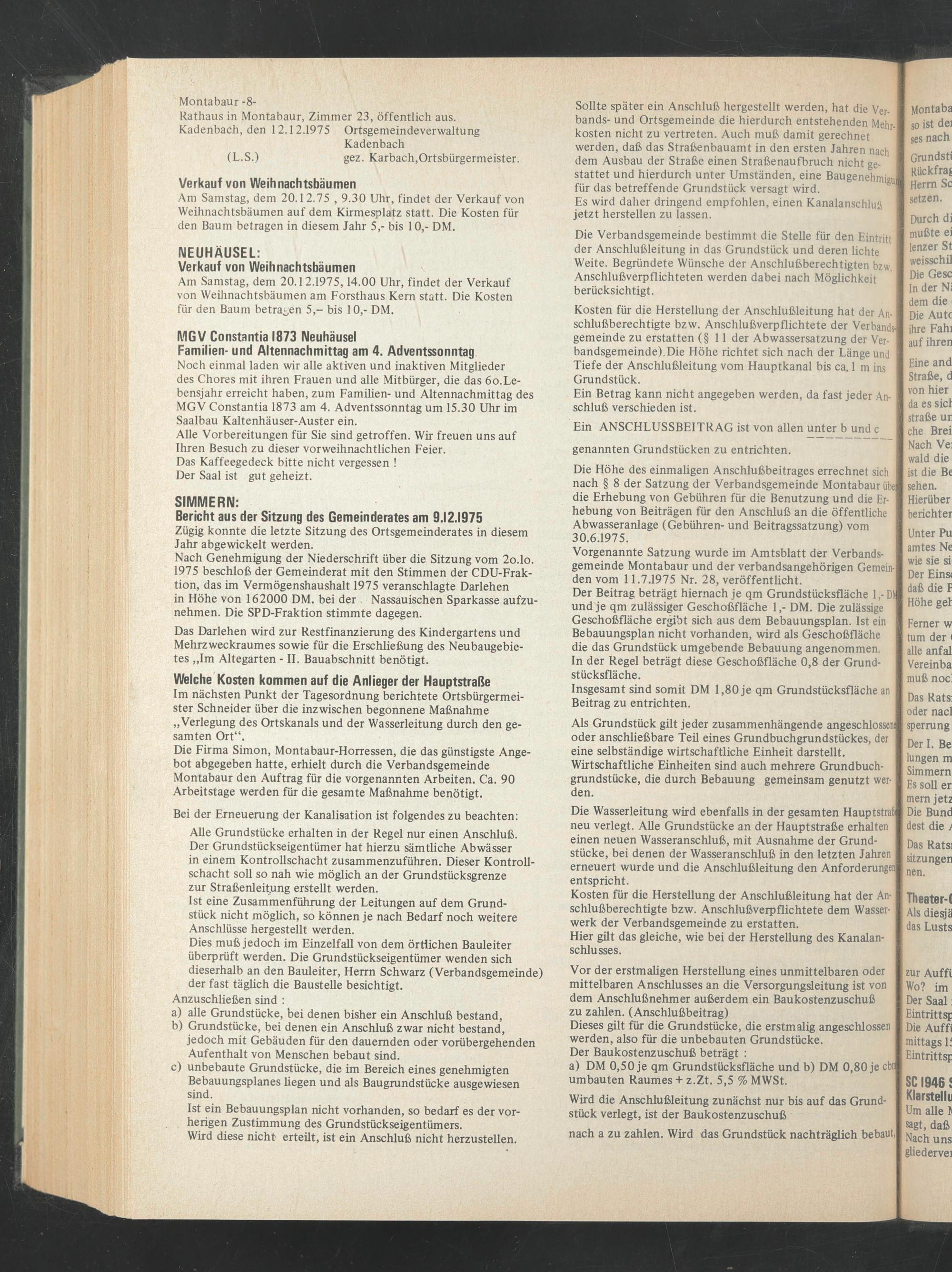 Kadenbach, den 12.12.1975 Ortsgemeindeverwaltung