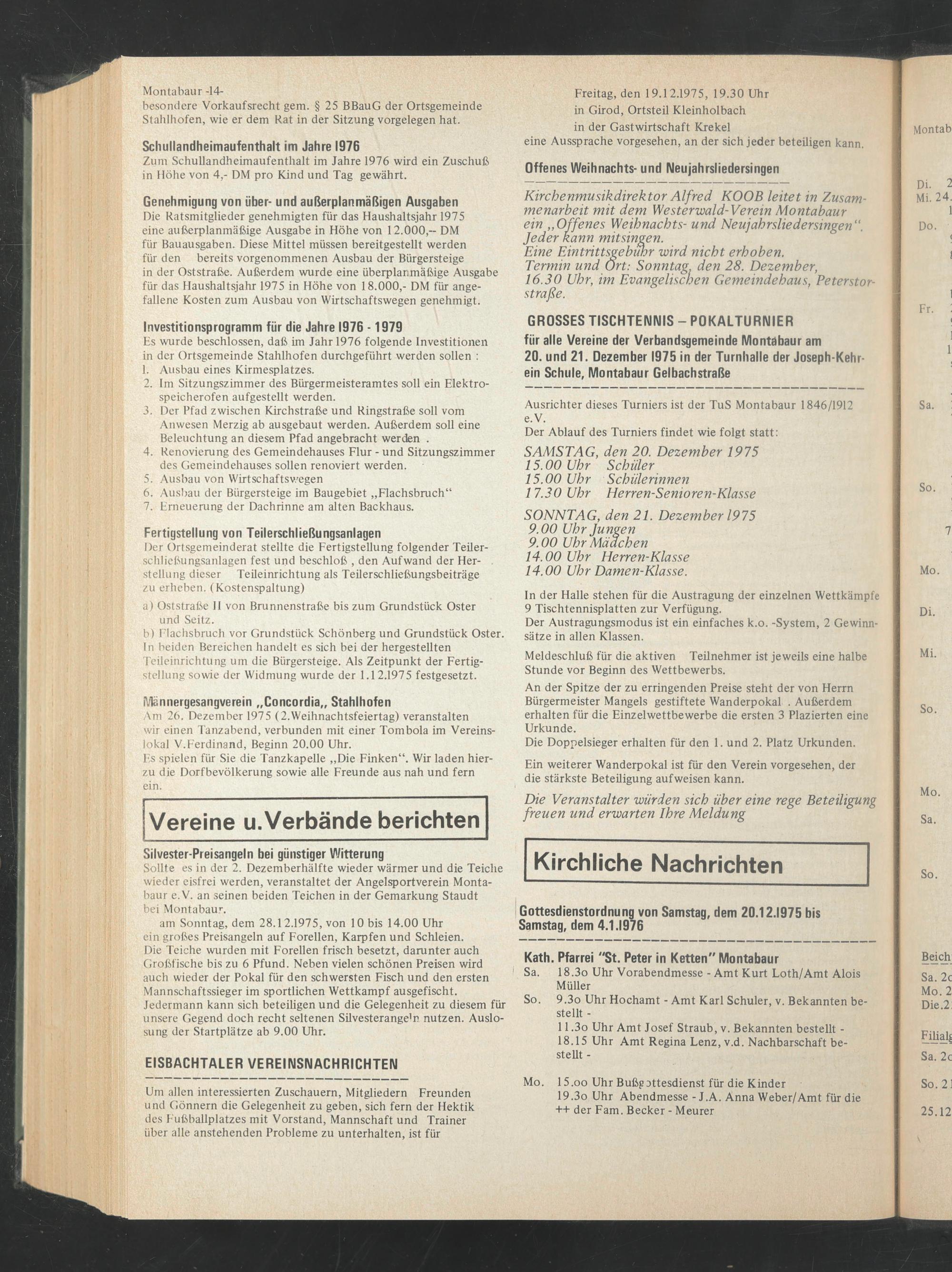 Hs wurde beschlossen, daß im Jahr 1976 folgende Investitionen in der Ortsgemeinde Stahlhofen durchgeführt werden sollen :