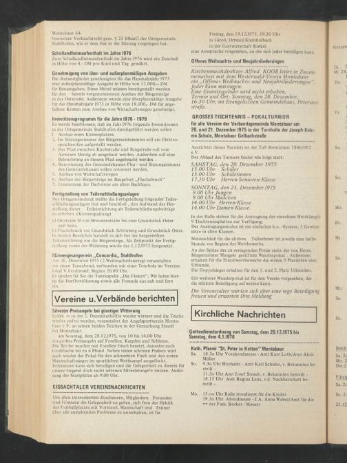 Gottesdienstordnung von Samstag, dem 20.12.1975 bis Samstag, dem 4.1.1976