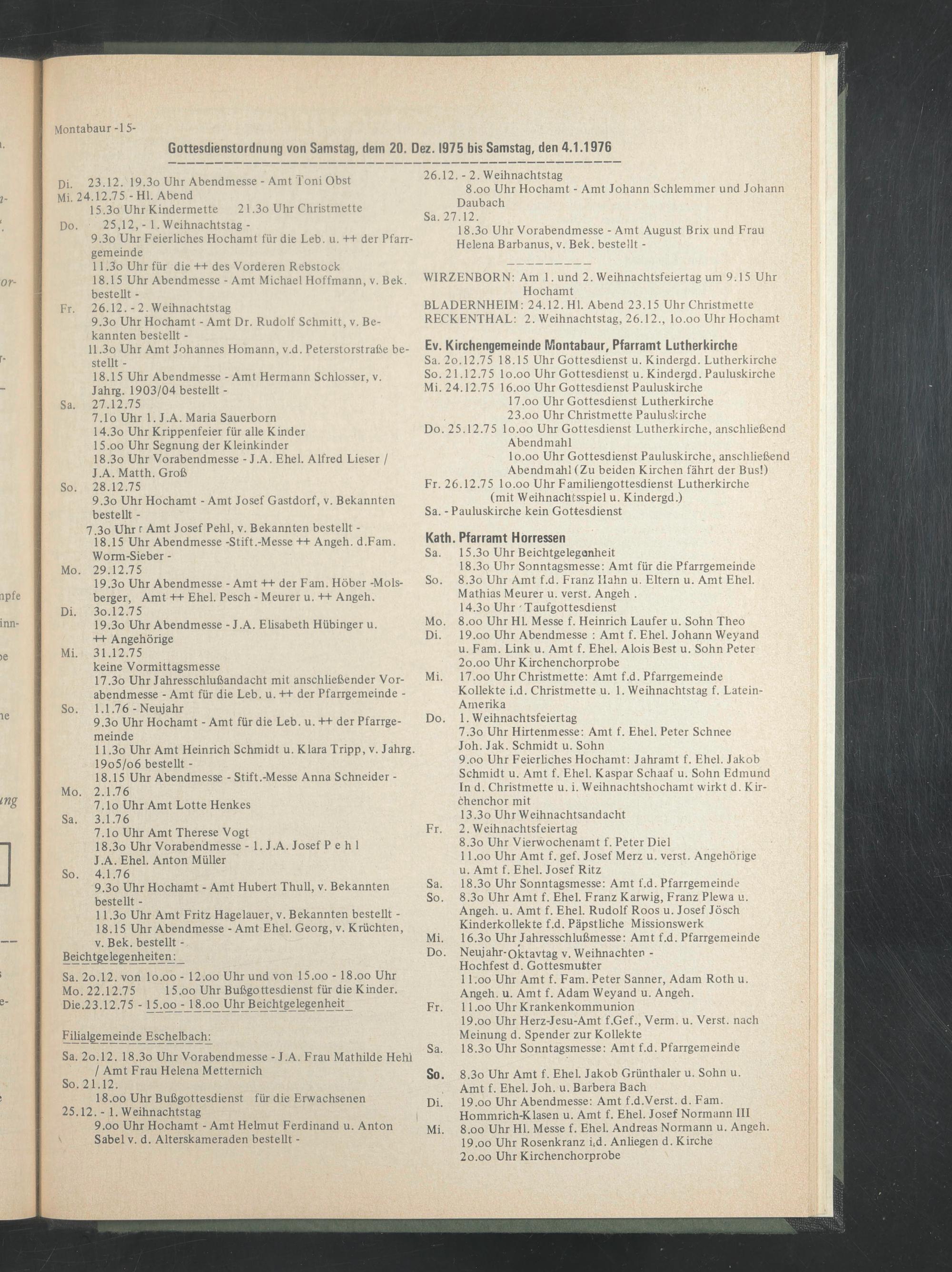 Gottesdienstordnung von Samstag, dem 20. Dez. 1975 bis Samstag, den 4.1.1976