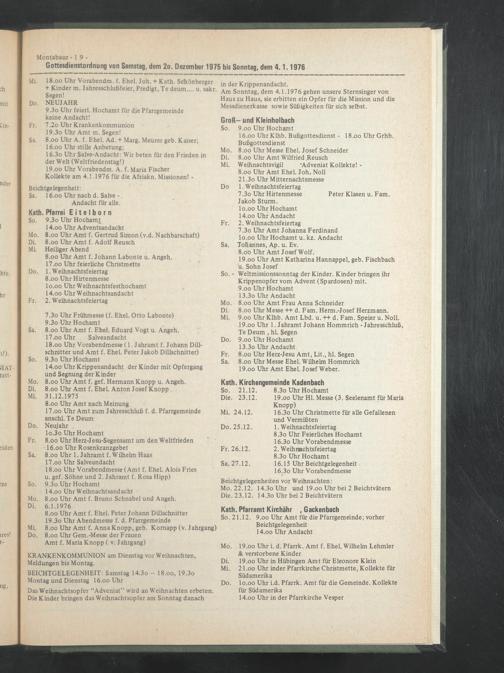 Gottesdienstordnung von Samstag, dem 2o. Dezember 1975 bis Sonntag, dem 4.1.1976