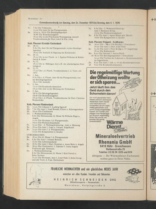Gottesdienstordnung von Samstag, dem 2o. Dezember 1975 bis Sonntag, dem 4.1.1976