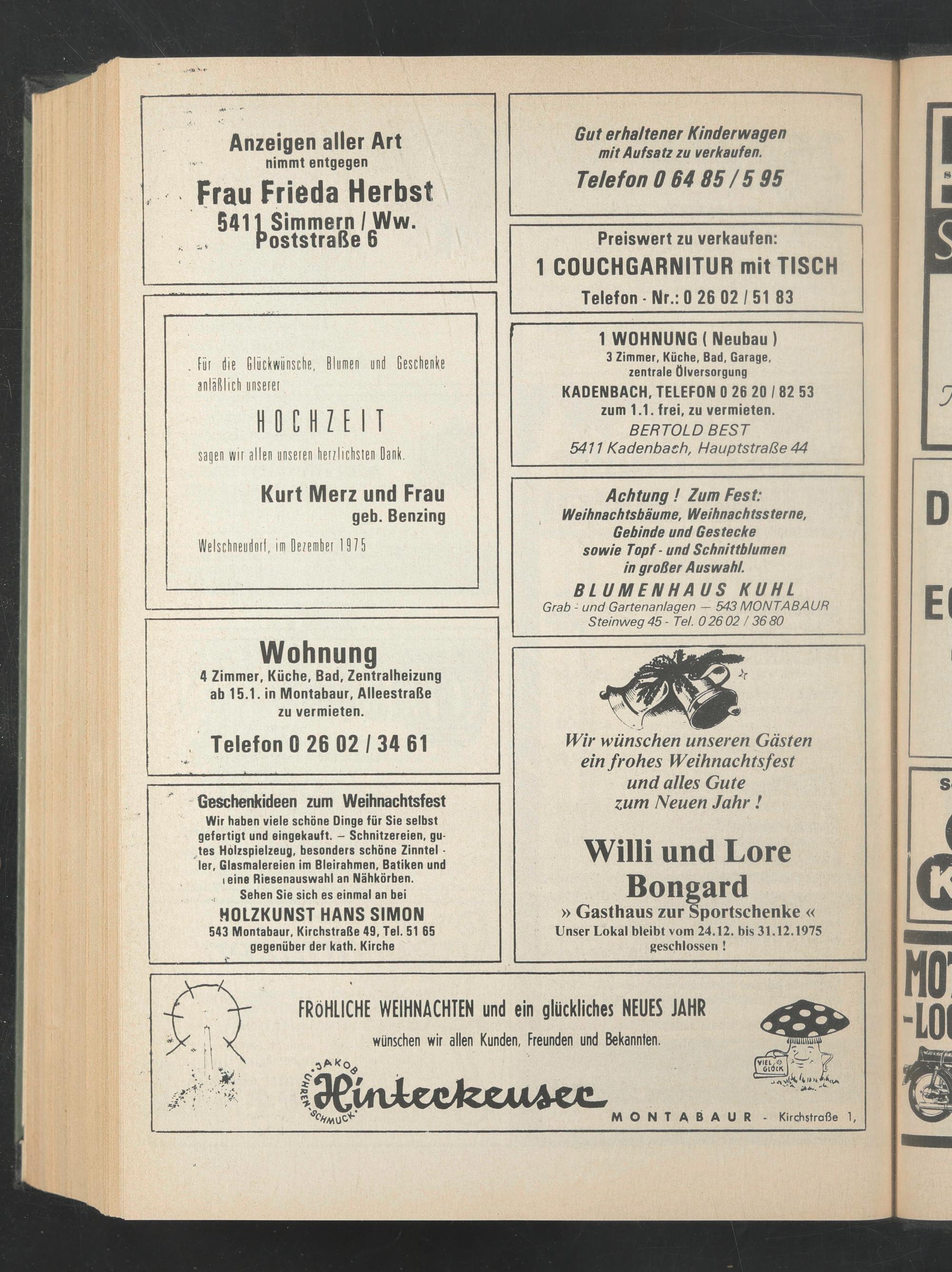 Unser Lokal bleibt vom 24.12. bis 31.12.1975 geschlossen !