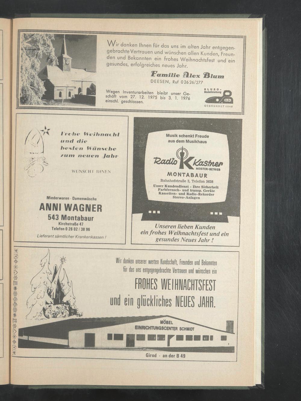 Wegen Inventurarbeiten bleibt unser Geschäft vom 27. 12. 1975 bis 3. 1. 1976 einschl. geschlossen.