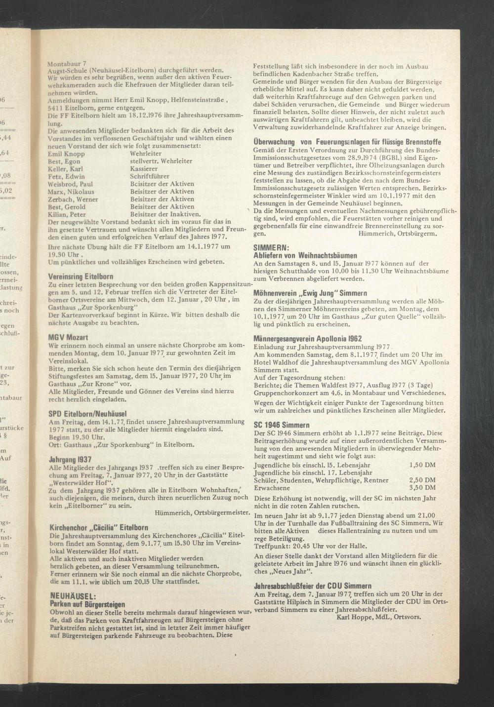 Zu der diesjährigen Jahreshauptversammlung werden alle Möh- nen des Simmerner Möhnenvereins gebeten, am Montag, dem 10.1.1977 um 20 Uhr im Gasthaus „Zur guten Quelle“ vollzählig und pünktlich zu erscheinen.
