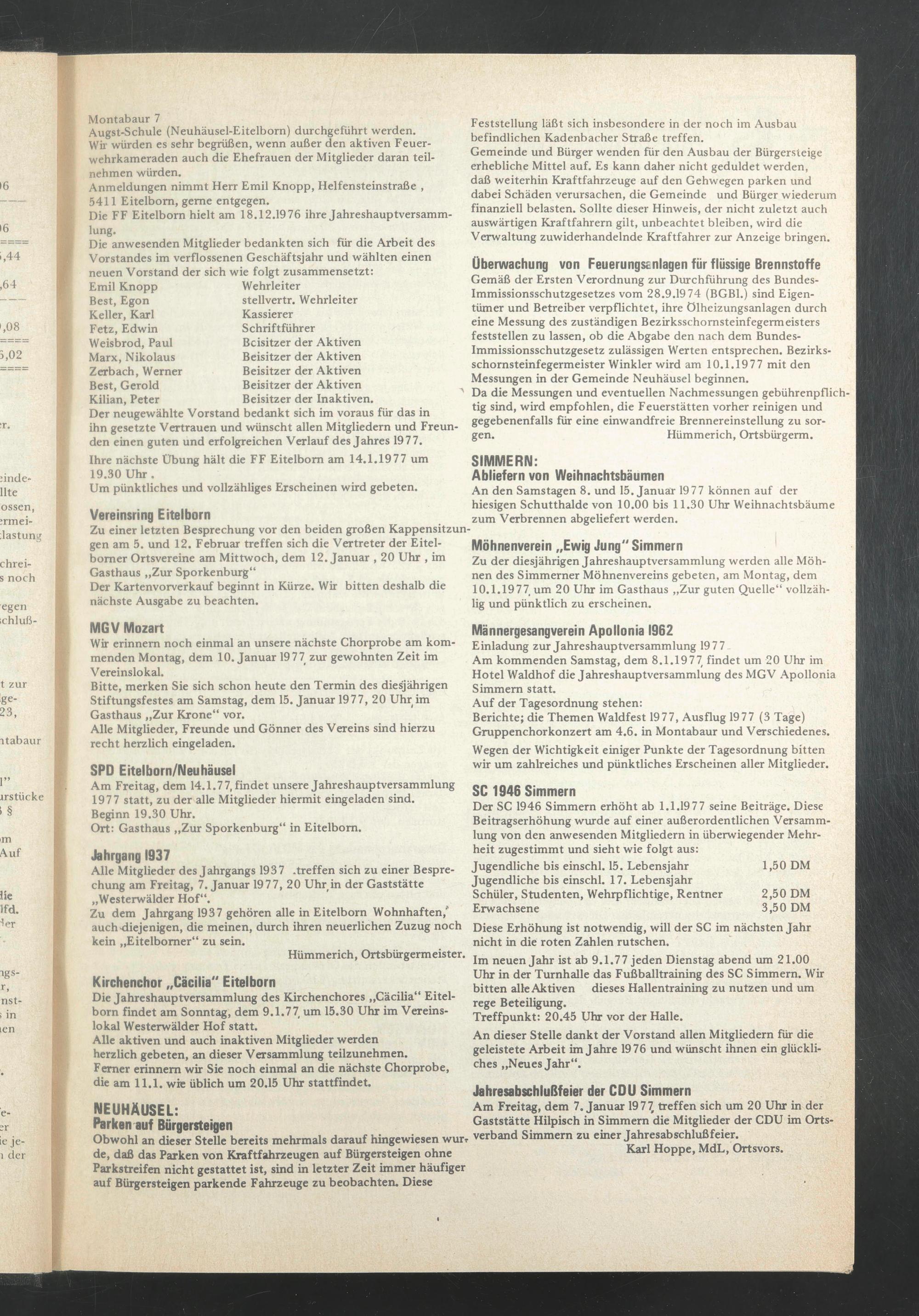 An dieser Stelle dankt der Vorstand allen Mitgliedern für die geleistete Arbeit im Jahre 1976 und wünscht ihnen ein glückliches „Neues Jahr“.