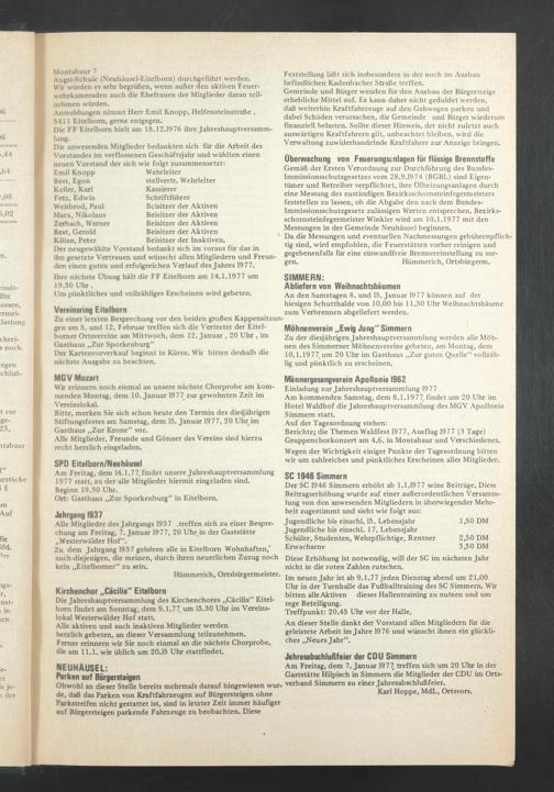 Die FF Eitelbom hielt am 18.12.1976 ihre Jahreshauptversammlung.