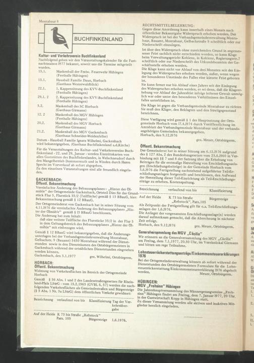 Diese Verfügung wird gemäß § 1 der Hauptsatzung der Ortsgemeinde Horbach vom 17.4.1974 durch Veröffentlichung im Amtsblatt der Verbandsgemeinde Montabaur und der verbandsangehörigen Gemeinden bekanntgegeben.