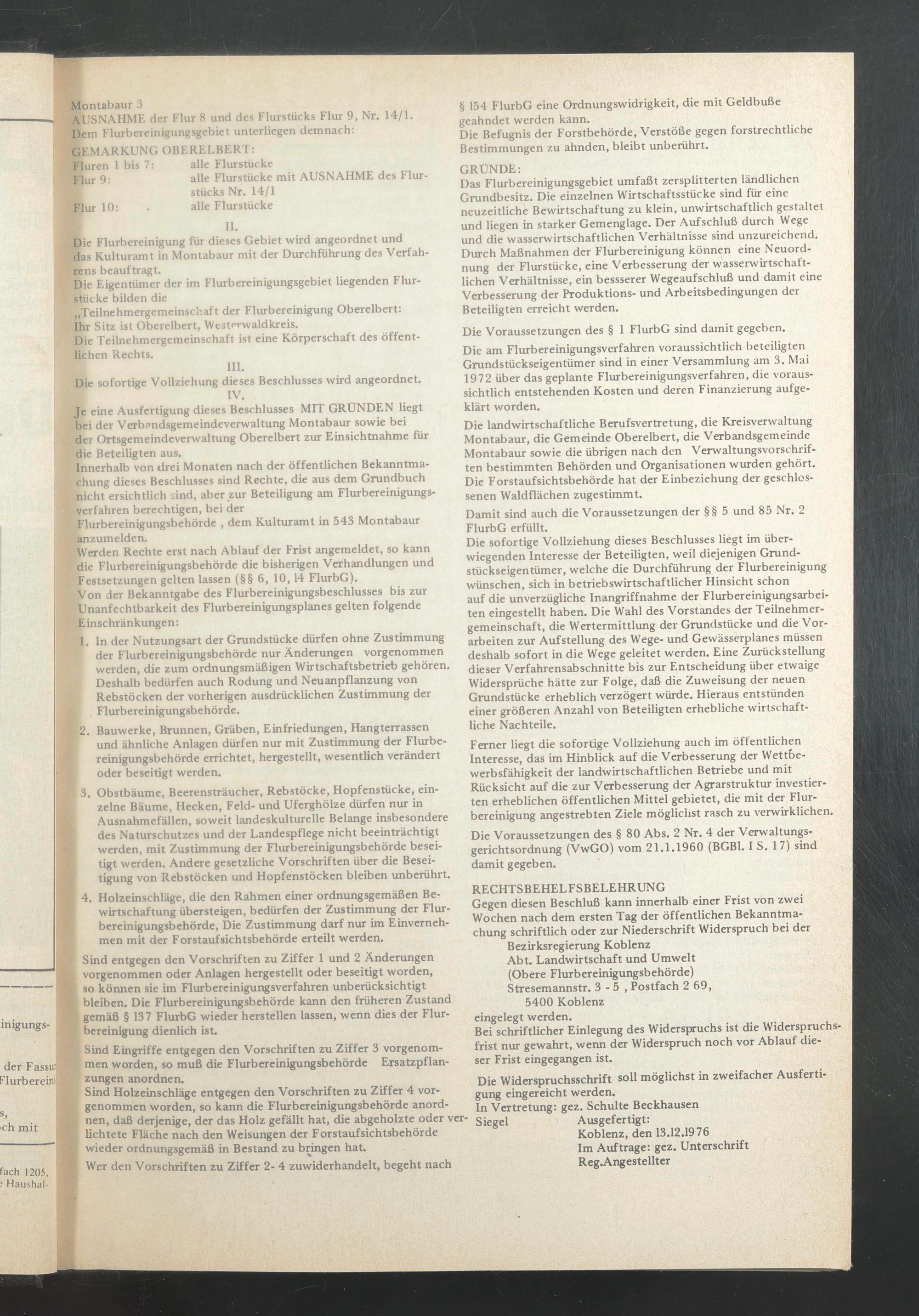 Koblenz, den 13.12.1976 Im Aufträge: gez. Unterschrift Reg.Angestellter