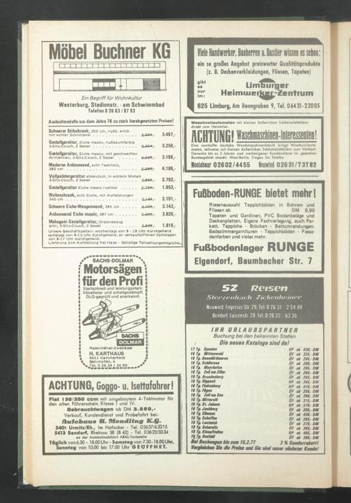 Auslaufmodelle aus dem Jahre 76 zu stark herabgesetzten Preisen!