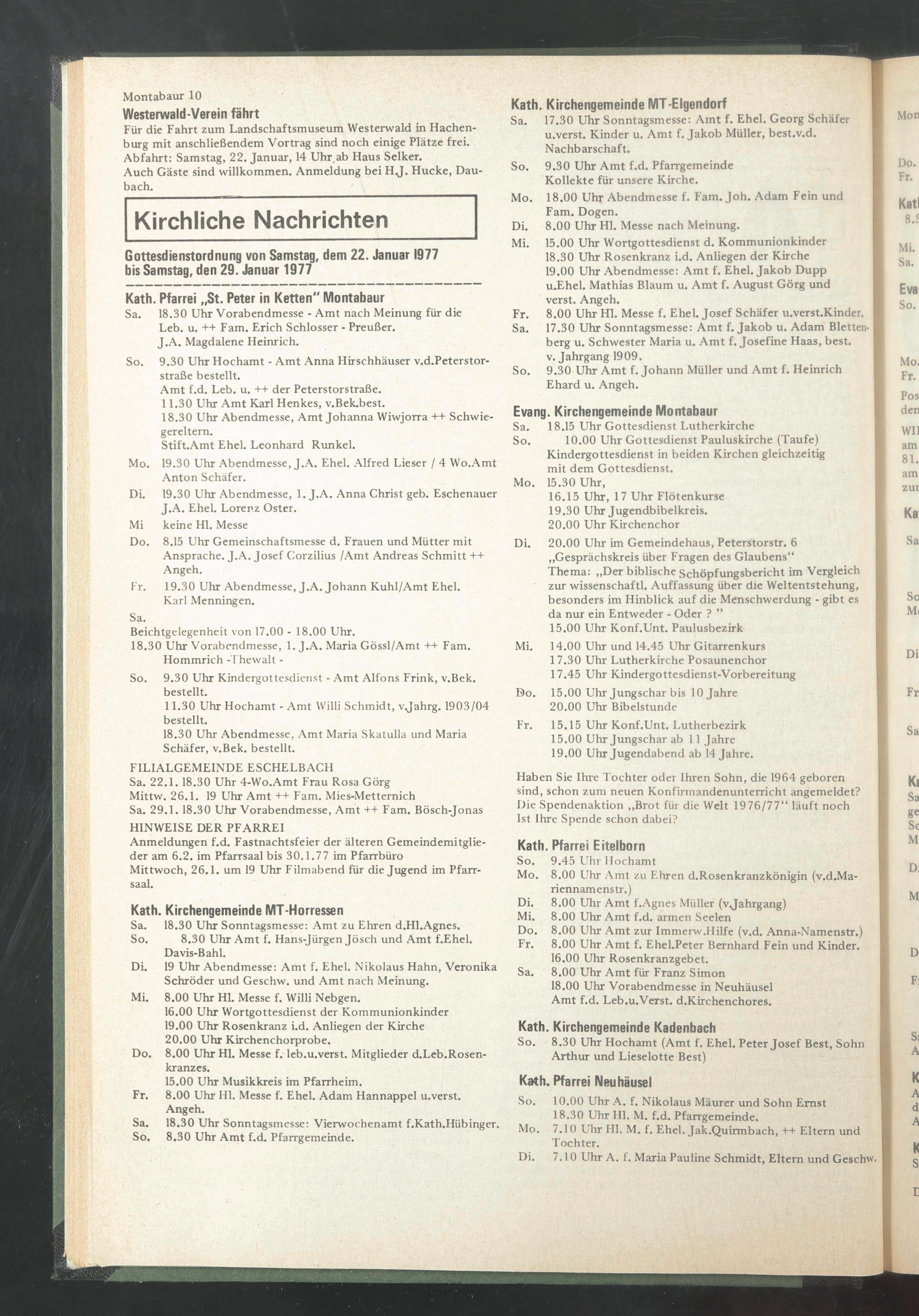Gottesdienstordnung von Samstag, dem 22. Januar 1977 bis Samstag, den 29. Januar 1977