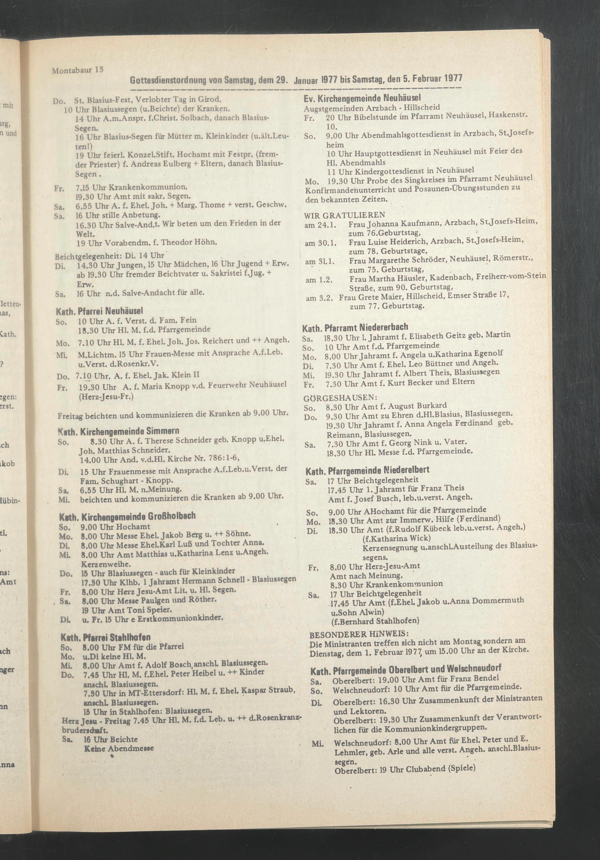 Gottesdienstordnung von Samstag, dem 29. Januar 1977 bis Samstag, den 5. Februar 1977
